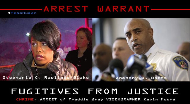 TeamHuman ARREST WARRANTFreddie Gray Citizen Videographer Kevin Moore ArrestedElias GriffinMay 16, 2015ShareBaltimore Fugitives From Justice**Updated Comments 10-12-2021: They were both fired and resigned shortly thereafter.
