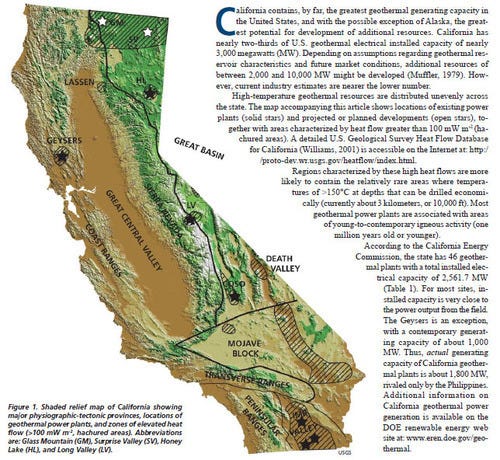Imagine if a whole area had many different kinds of geothermal facilities from multiple different companies using multiple different technologies? Already true. What if multiples of those are all along major fault lines, all over California? Already true.
